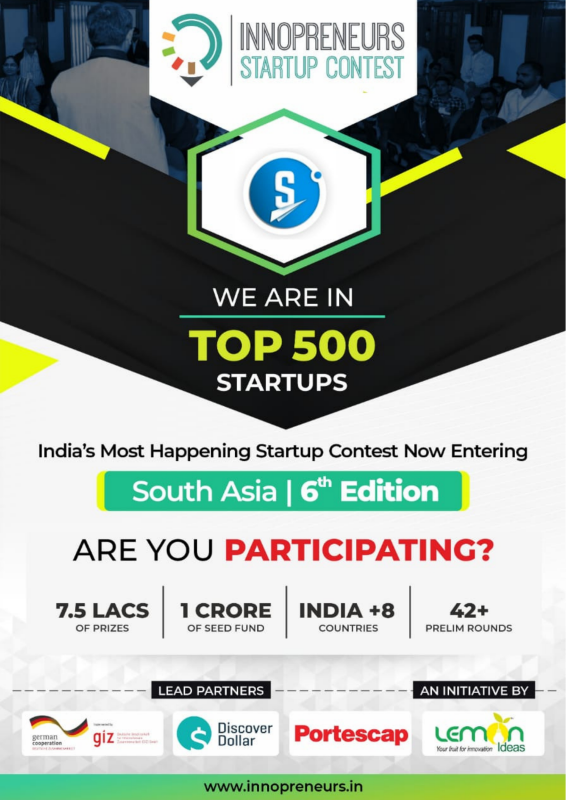 We are one of the top 500 startups in the South Asia. On the occasion of its sixth edition, we were a part of India's most happening startup on contest in South Asia. We were recognized one of the top 500 startups in South Asia. Whereas main partners were German corporation discover dollar portescap and it was an initiative taken by lemon ideas.